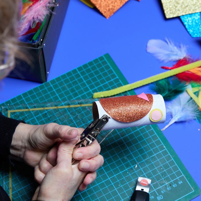 Wir haben sehr(!) lange gesammelt und heute ist der Tag, all die Klopapierrollen in etwas zu verwandeln, was alles andere als trist und grau ist. In unserem kostenlosen Juli-Drop-In-Drop-Out wirst Du mithilfe von Federn und einer guten Portion Glitzer aus einer Klopapierrolle einen gefiederten Freund gestalten. Obwohl das zauberhafte Wesen nicht fliegen kann, lässt es sich mit seinen Pfeifenputzer-Beinen z.B. an Deinen Arm klammern und erkundet auf diese Weise mit Dir die Welt.